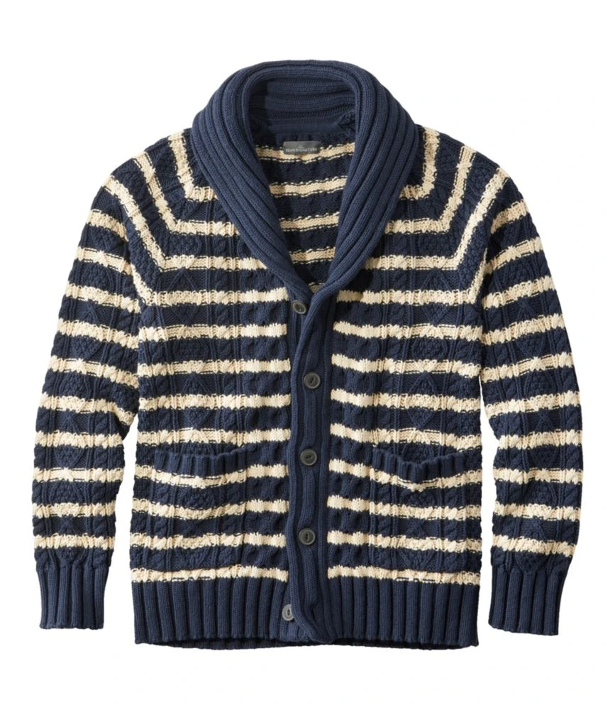 A classic cable-knit cardigan sweater with nautical stripes and a more modern slim fit. Designed in premium cotton yarns for all-season wear.